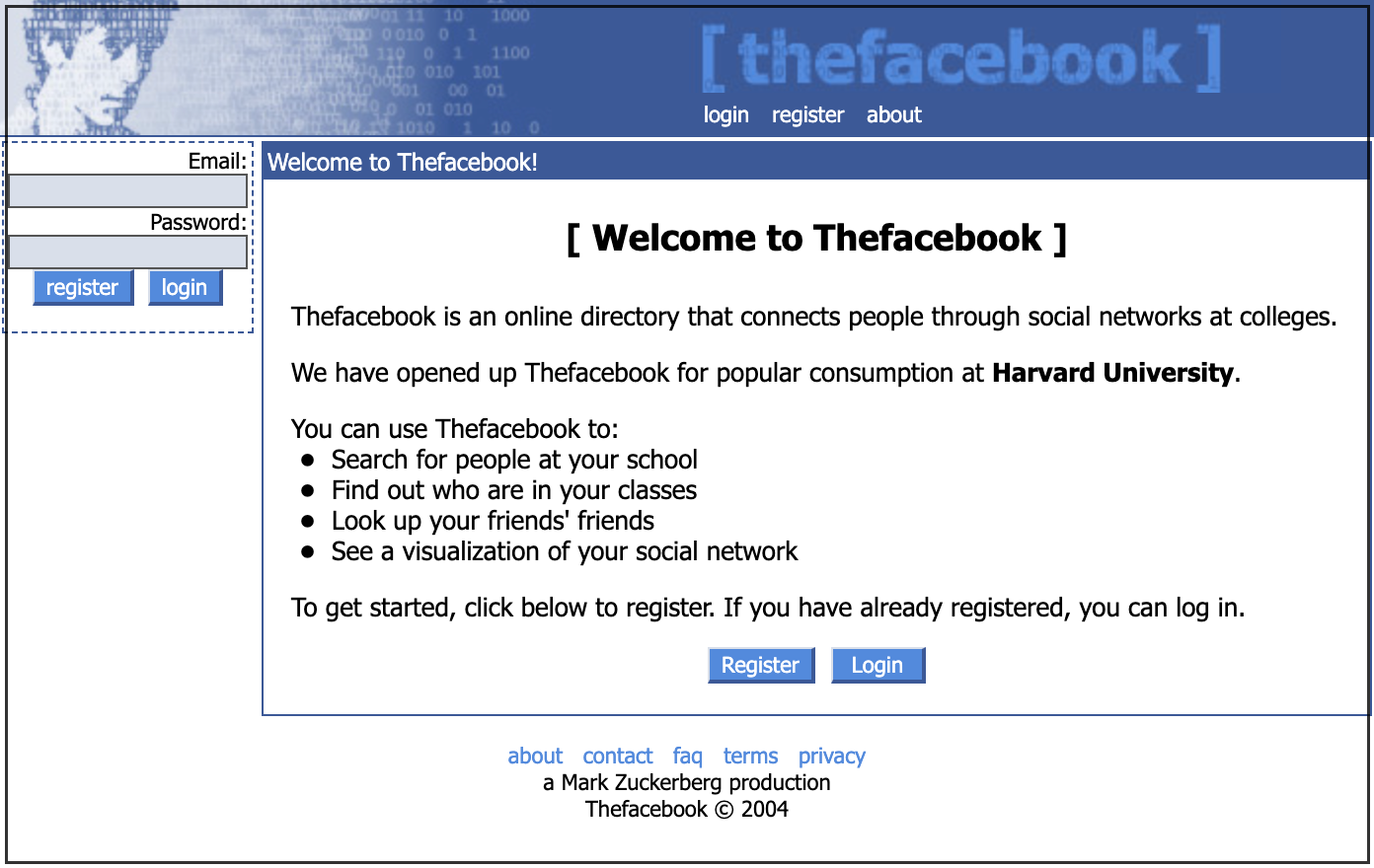 - Wanna check out how Facebook started? Check out this website: https://web.archive.org