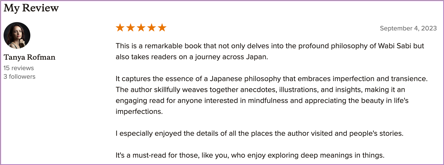 Most powerful is Wabi-Sabi: finding beauty in life's imperfections. I read this book a year ago and I highly recommend giving it a try.